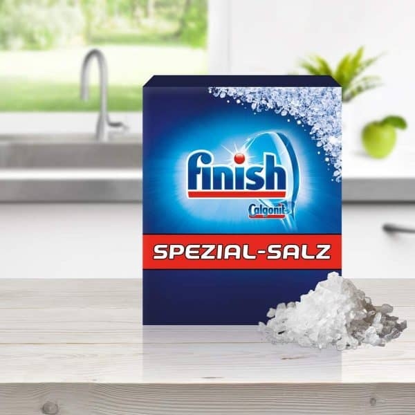 Để ngăn ngừa canxi máy rửa chén được trang bị với 1 chất làm mềm nước. Muối rửa bát finish là loại muối đặc biệt không phải muối ăn ( muối bình thường có thể chứa các thành phần không hòa tan, mà còn là dư lượng trên các món ăn và dẫn đến làm hại máy rửa bát, muối rửa bát finish nhập khẩu giúp bảo vệ cả máy rửa chén, bộ lọc và phun vũ khí cũng như đồ sành sứ và dao kéo.